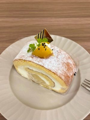 しっとりした生地に生クリームとスイートポテトのクリームを巻きました。